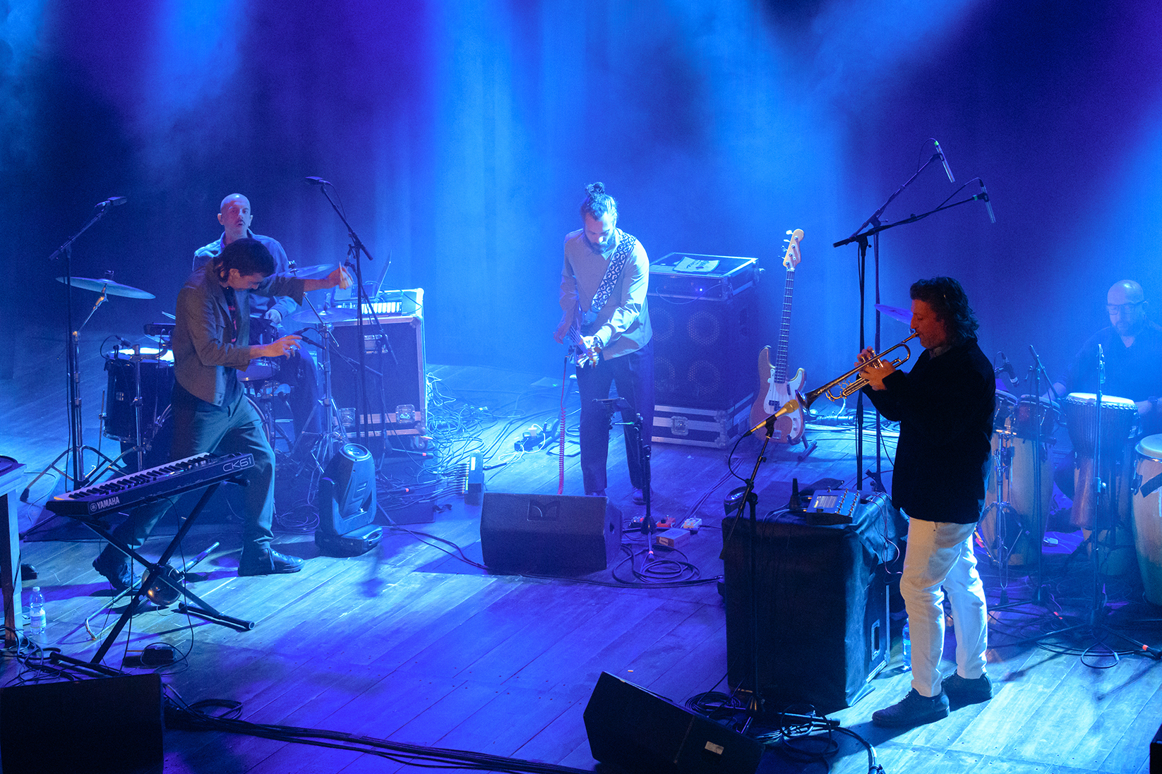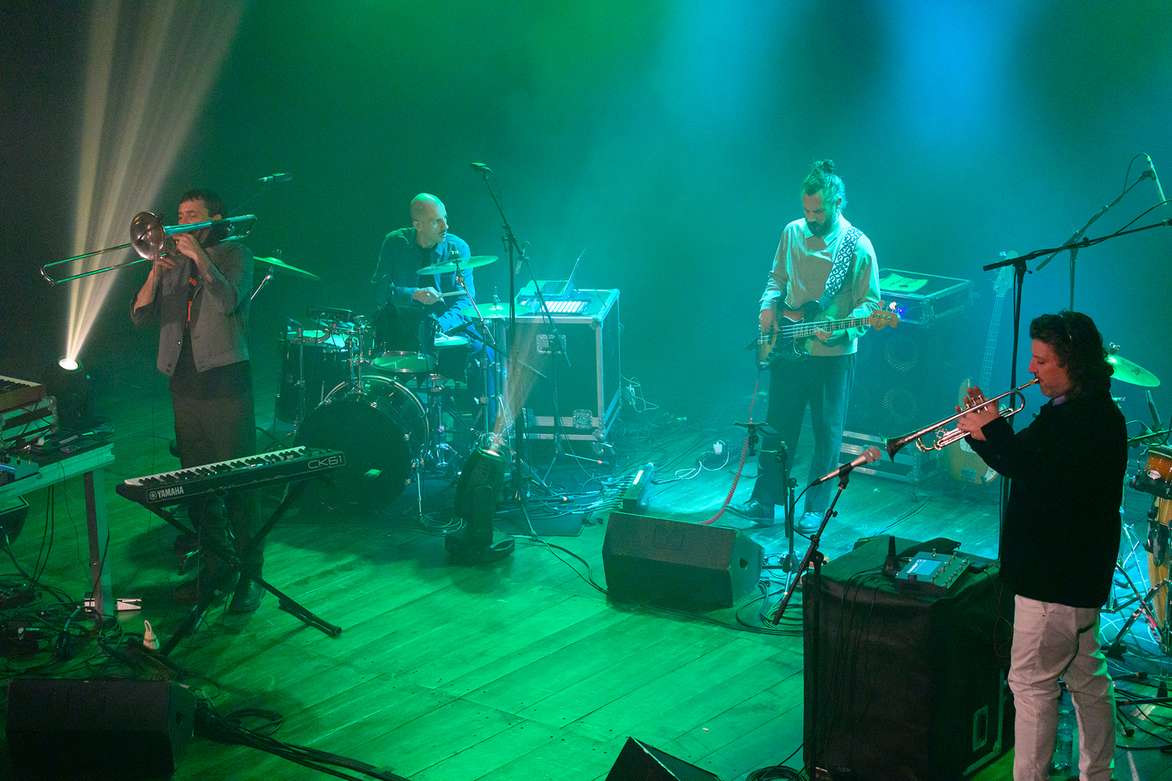 Un’esibizione potente, libera e immersiva, che ha coinvolto il pubblico in un’esperienza sonora in continua trasformazione, tra improvvisazione, ricerca elettronica e slanci cosmici. Il trombonista e compositore, tra le figure più rilevanti della scena europea, ha costruito insieme al suo ensemble un set denso di energia e visione, confermando la capacità del jazz di essere ancora oggi uno spazio aperto di sperimentazione e possibilità.